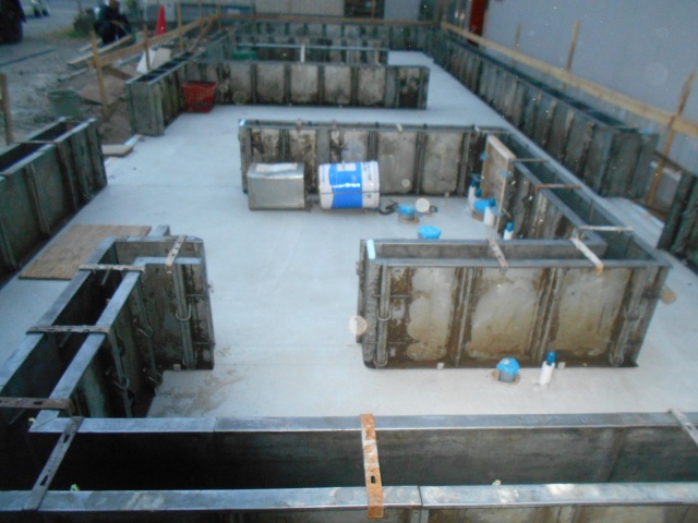 水分が抜けたら天端レベラーを流し、レベラーとは、水平を取るために流すモルタルのようなものです。ここから、3日間、養生をした後に型枠を解体します。